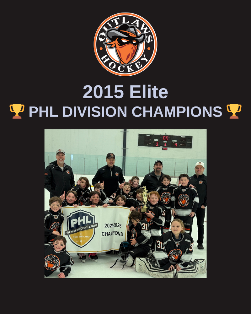 A special congratulations to our Outlaws Hockey 2015 Elite team on capturing the PHL Division Championship this weekend! The 2015 Outlaws battled hard all season and capped it off with a thrilling 4–3 victory over the Maine Wild in the finals.
