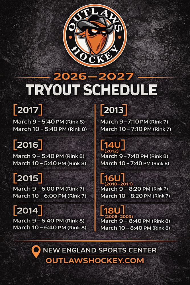 These new teams will feature two practices a week at the Jahn Ice Rink in Pomfret with a full schedule of NEPHL games. Additionally, skills sessions from the Outlaws staff will be provided. The Outlaws, one of the oldest and most stable youth programs in New England, just completed the 2024-25 season and celebrated a PHL championship with the 2013 Elite team.